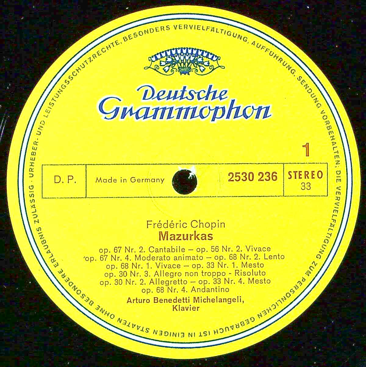商品コード:REG-3619[独DGG] A.B.ミケランジェリ(pf) / ショパン:マズルカ(10曲) 他