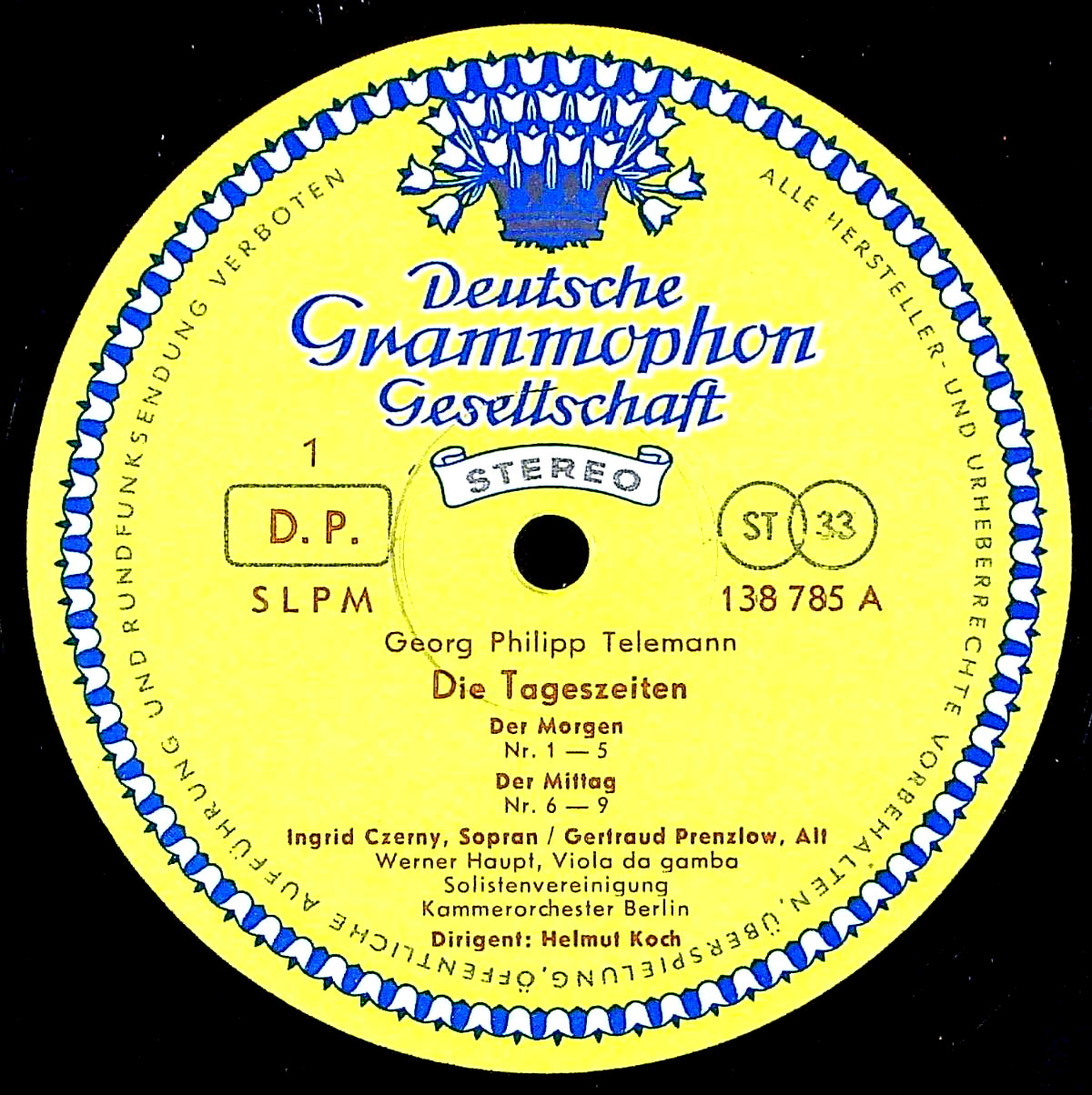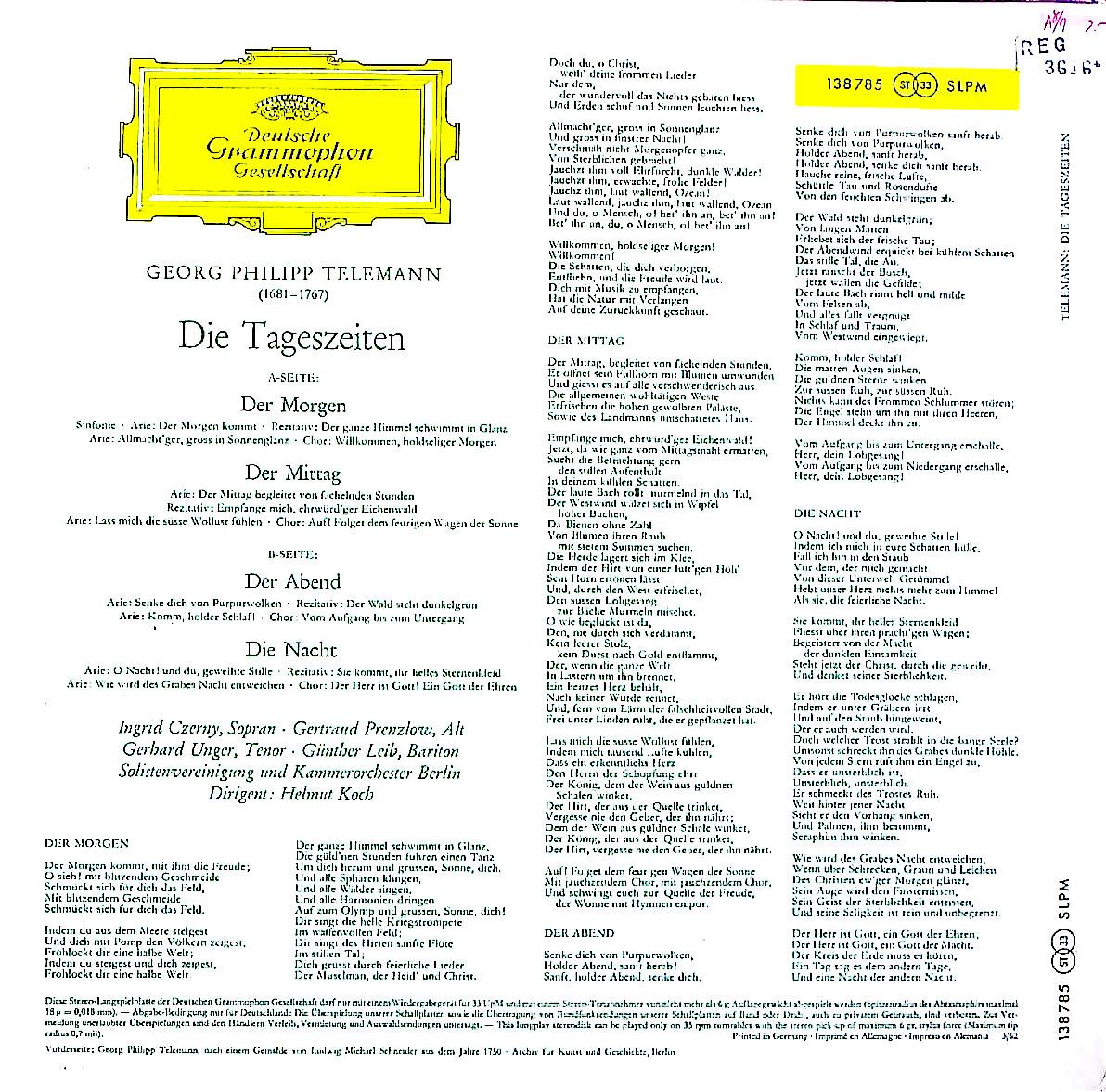 商品コード:REG-3616t[独DGG] H.コッホ指揮/ テレマン:カンタータ「一日の時」