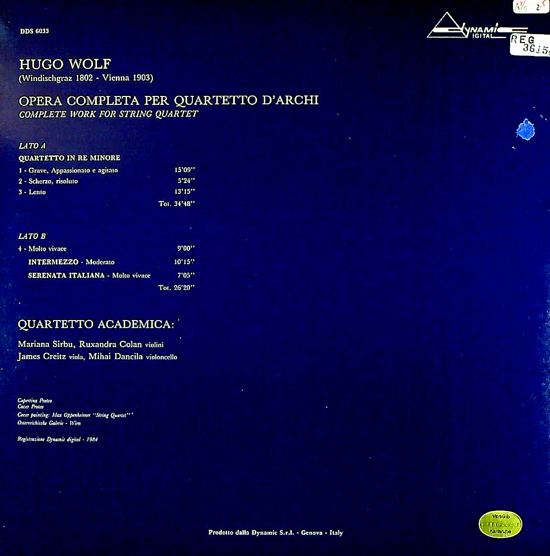 商品コード:REG-3615t[伊DYNAMIC] アカデミアQt. / ヴォルフ:SQ「困苦に耐え、欠乏を忍べ」 他