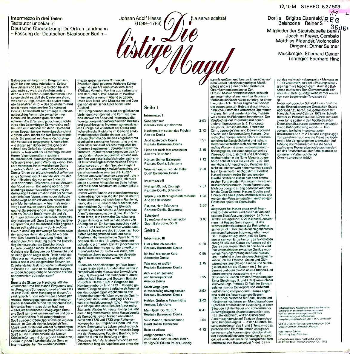 商品コード:REG-3606t[東独ETERNA] O.スウィトナー指揮/ J.A.ハッセ:淑女, あなたの瞳が炎に輝くとき 他