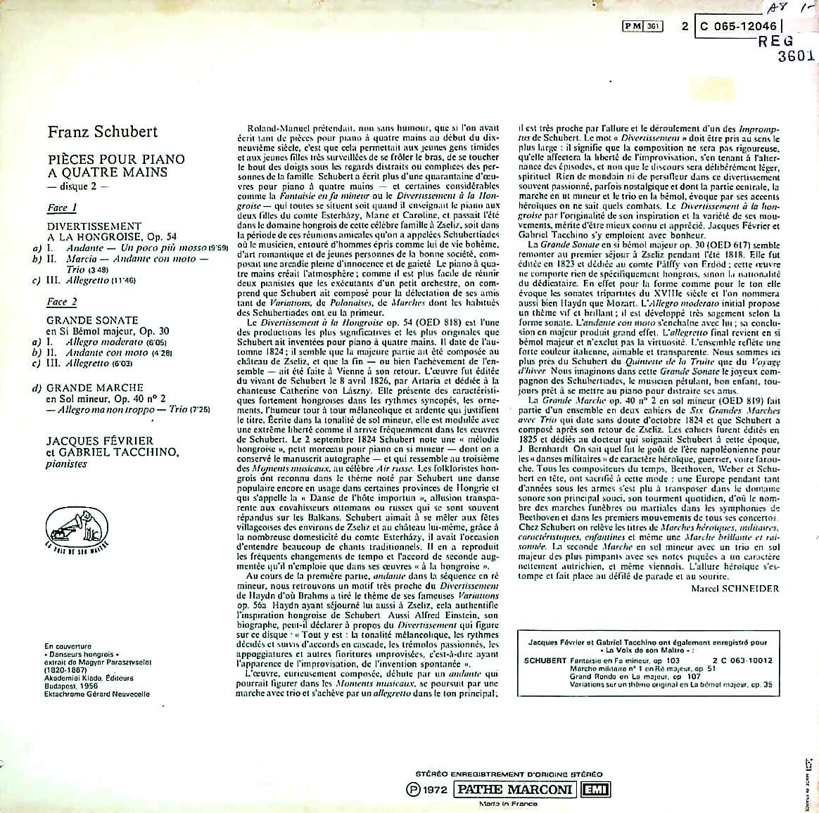 商品コード:REG-3601[仏VSM] J.フェヴリエ, G.タッキーノ(pf) / シューベルト:連弾集Vol.2