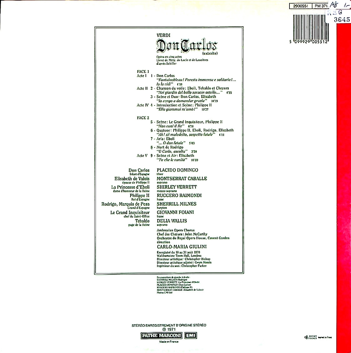 商品コード:REG-3645[仏VSM] P.ドミンゴ(t) 他 C.M.ジュリーニ指揮/ ヴェルディ:ドン・カルロ(ハイライト)