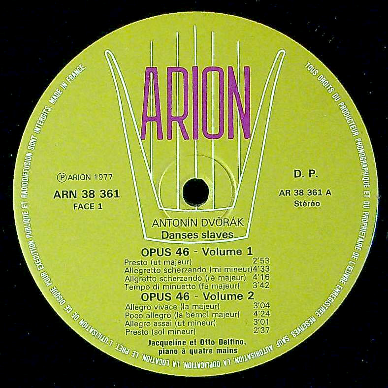商品コード:1343-058[ARION] J.&O.デルフィーノ(pf) / ドヴォルザーク:スラヴ舞曲全集(4手Pfによる)