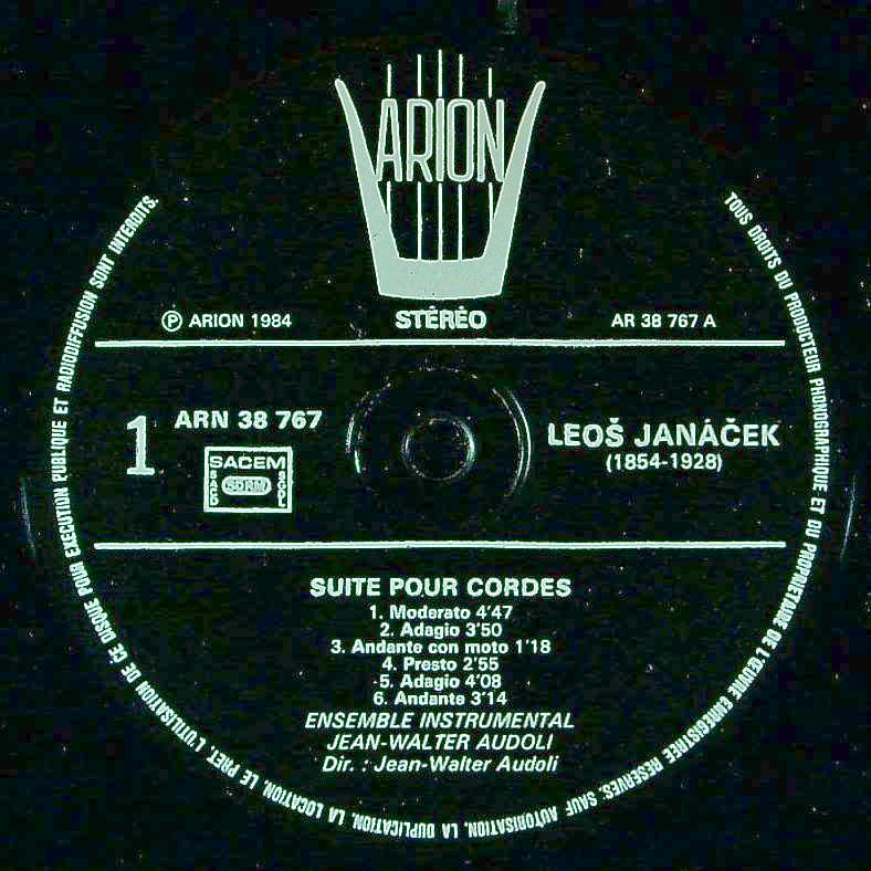 商品コード:1343-057[ARION] J.W.オードリ指揮 長沼百合子(vn) / ヤナーチェク:弦楽のための組曲(全6曲), 弦楽のための牧歌(全7曲)
