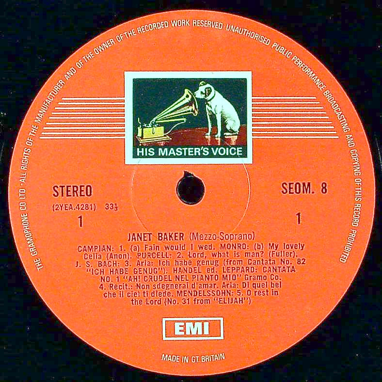 商品コード:1343-054[HMV] J.ベイカー(ms)/ 歌曲・アリア集/パーセル, バッハ, ヘンデル 他