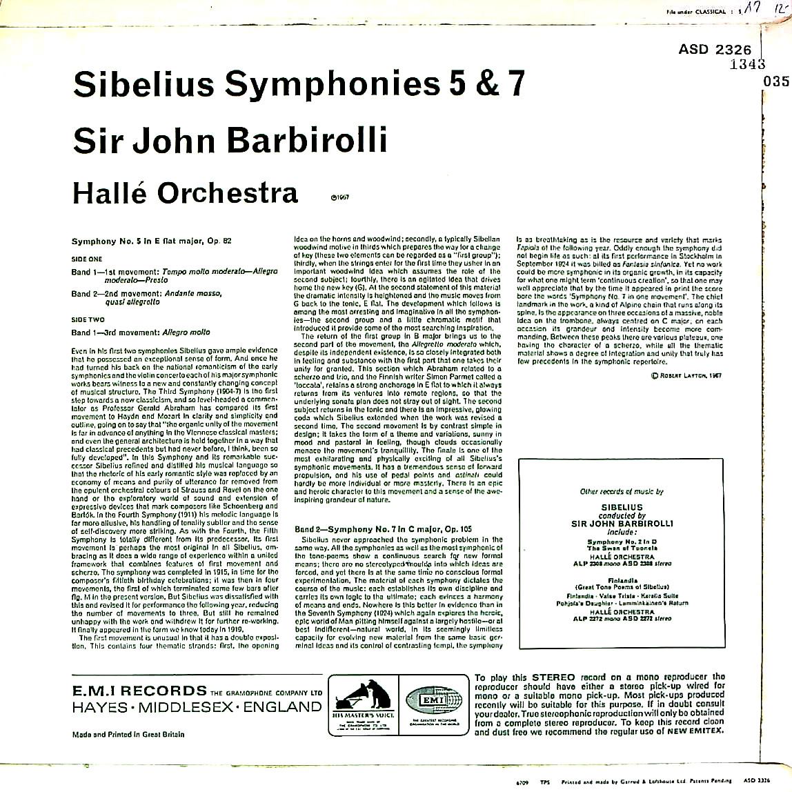商品コード:1343-035[HMV] J.バルビローリ指揮/ シベリウス:交響曲5, 7番