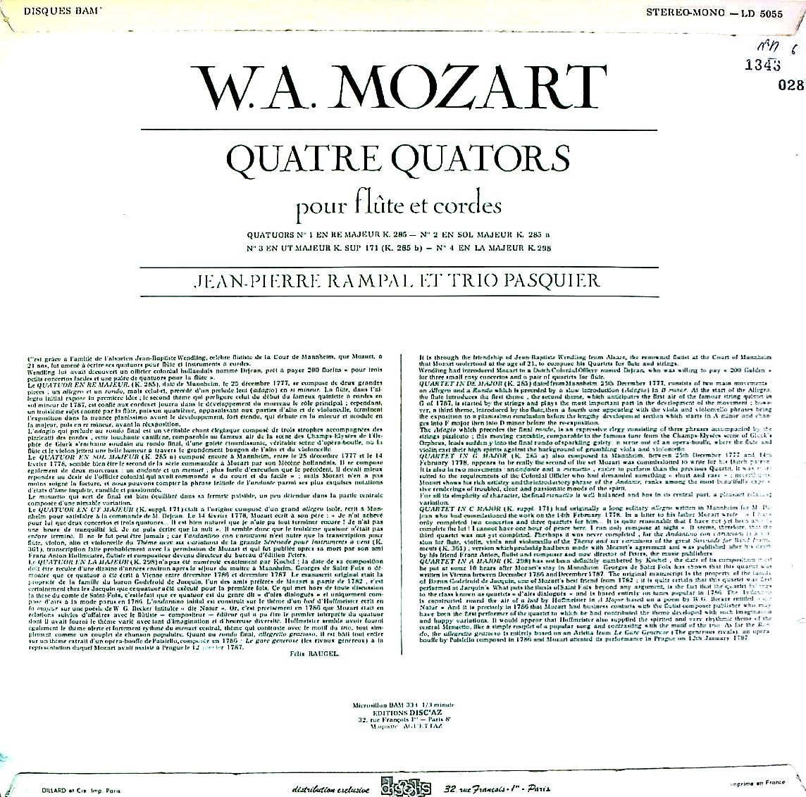 商品コード:1343-028[BAM] J.P.ランパル(fl) パスキエ・トリオ / モーツァルト:Fl四重奏曲集(全4曲)