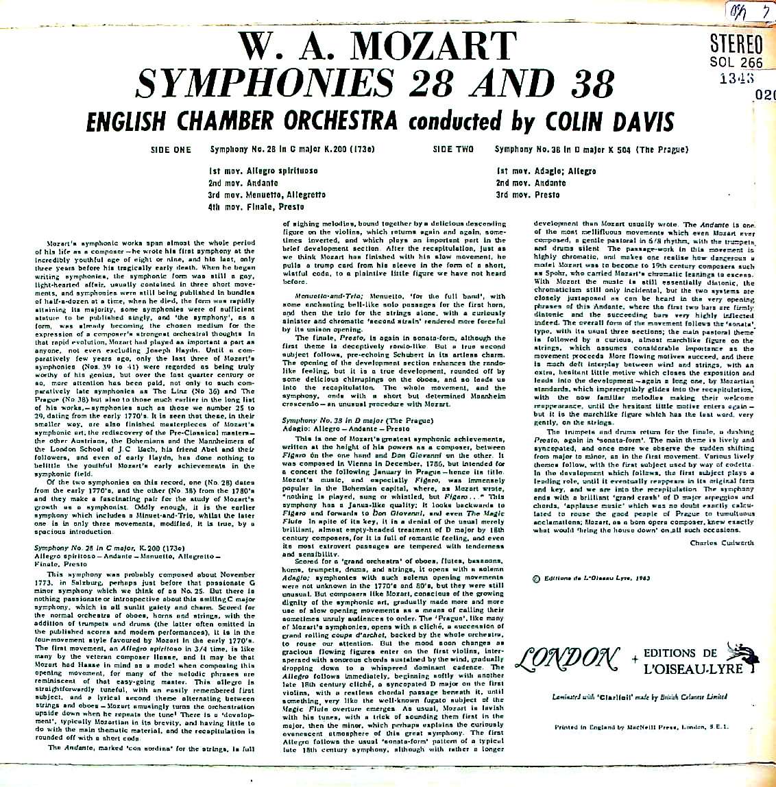 商品コード:1343-020[L'OISEAU LYRE] C.デイヴィス指揮/ モーツァルト:交響曲28, 38番「プラハ」