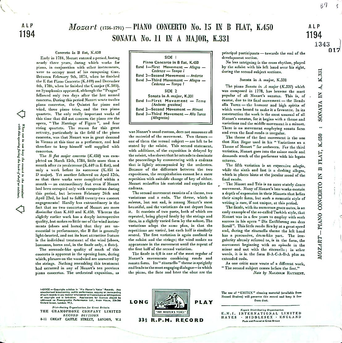 商品コード:1343-017[HMV] ソロモン・カットナー(pf)/ モーツァルト:Pf協奏曲11, 15番