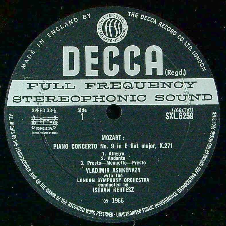 商品コード:1343-015[DECCA] V.アシュケナージ(pf)/ モーツァルト:Pf協奏曲8, 9番