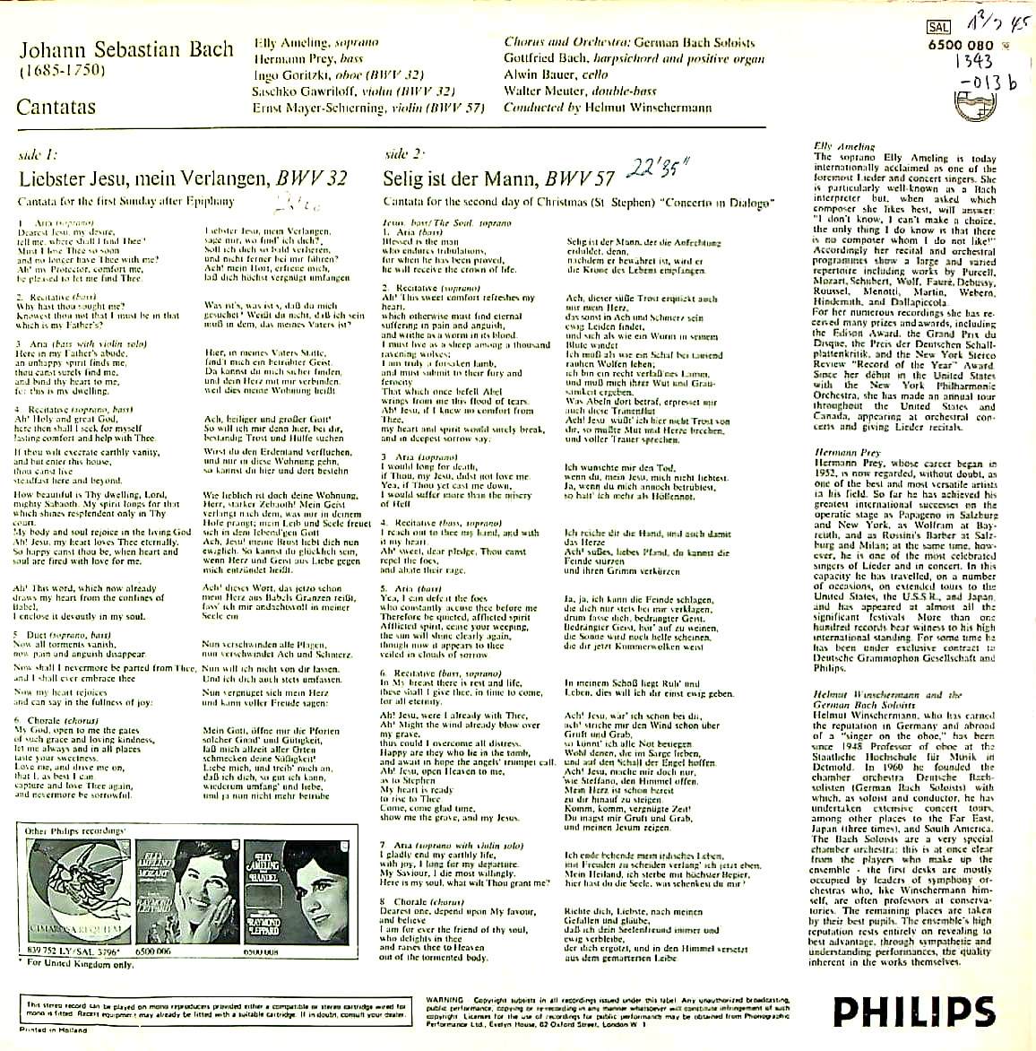 商品コード:1343-013b[PHILIPS] E.アーメリング(s) H.ヴィンシャマン指揮/ バッハ:カンタータ32, 57番