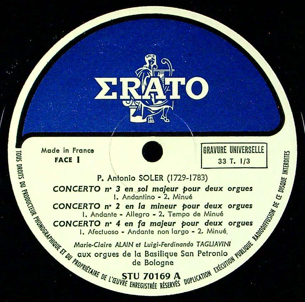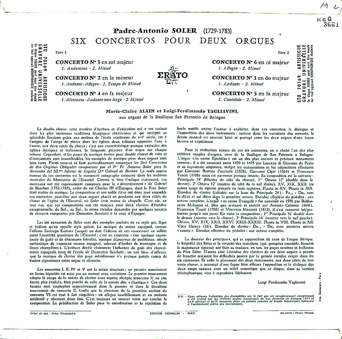 商品コード:REG-3661[仏ERATO] M.C.アラン, L.F.タリアヴィーニ(org) / ソレール:2Orgのための6つの協奏曲