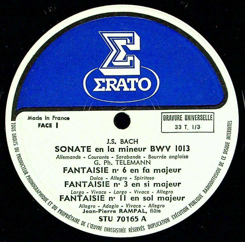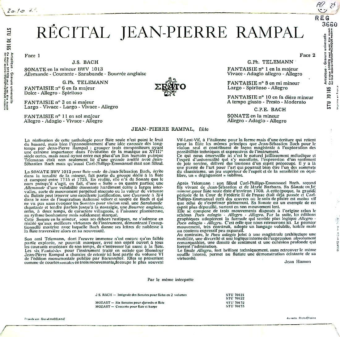 商品コード:REG-3660[仏ERATO] J.P.ランパル(fl) / バッハ:Flソナタ, テレマン:ファンタジー~6曲, C.P.E.バッハ:ソナタ