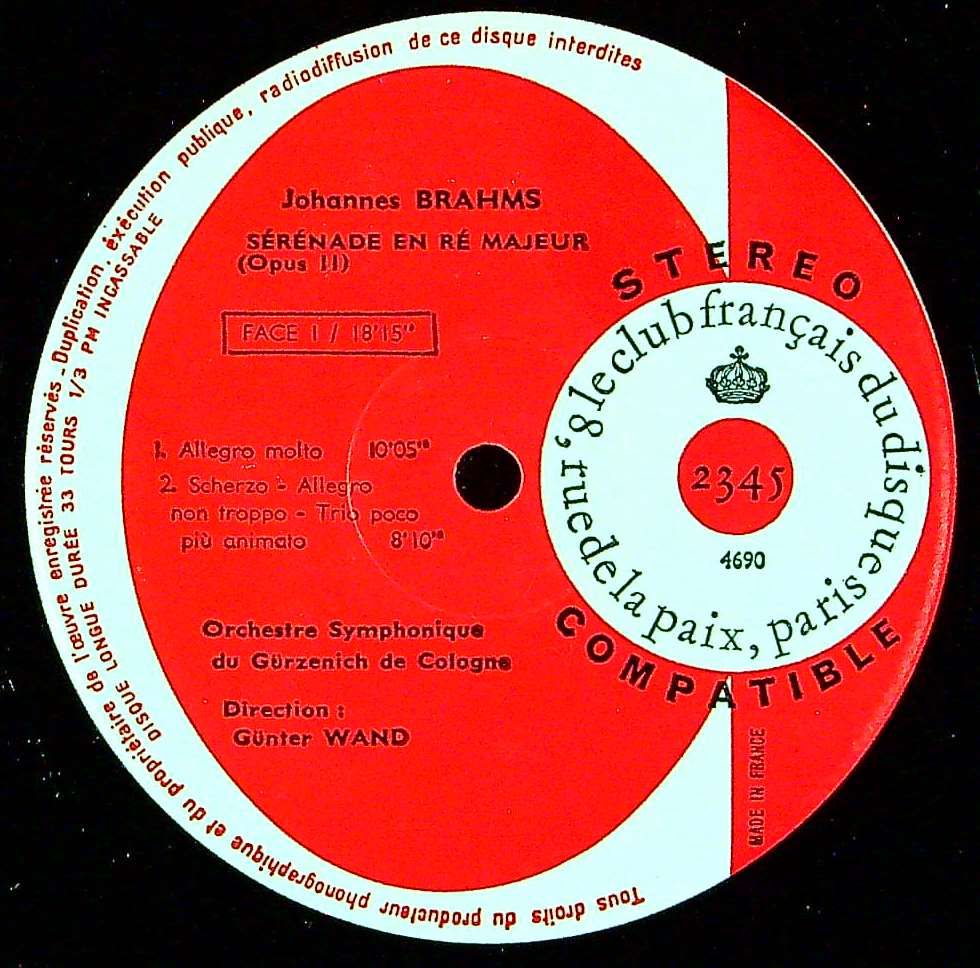 商品コード:1344-061[Club Français] G.ヴァント指揮/ ブラームス:セレナーデ1番