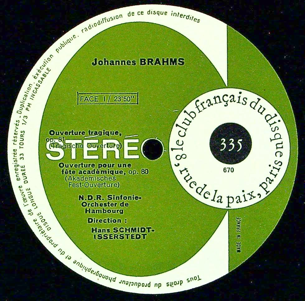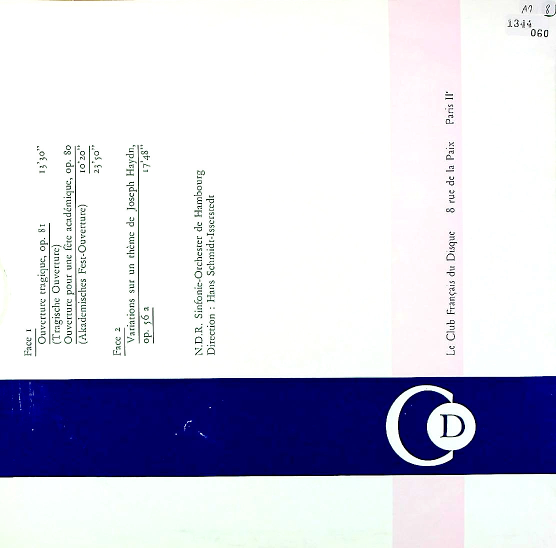商品コード:1344-060[Club Français] H.シュミット・イッセルシュテット指揮/ ブラームス:悲劇的序曲, 大学祝典序曲, ハイドン変奏曲