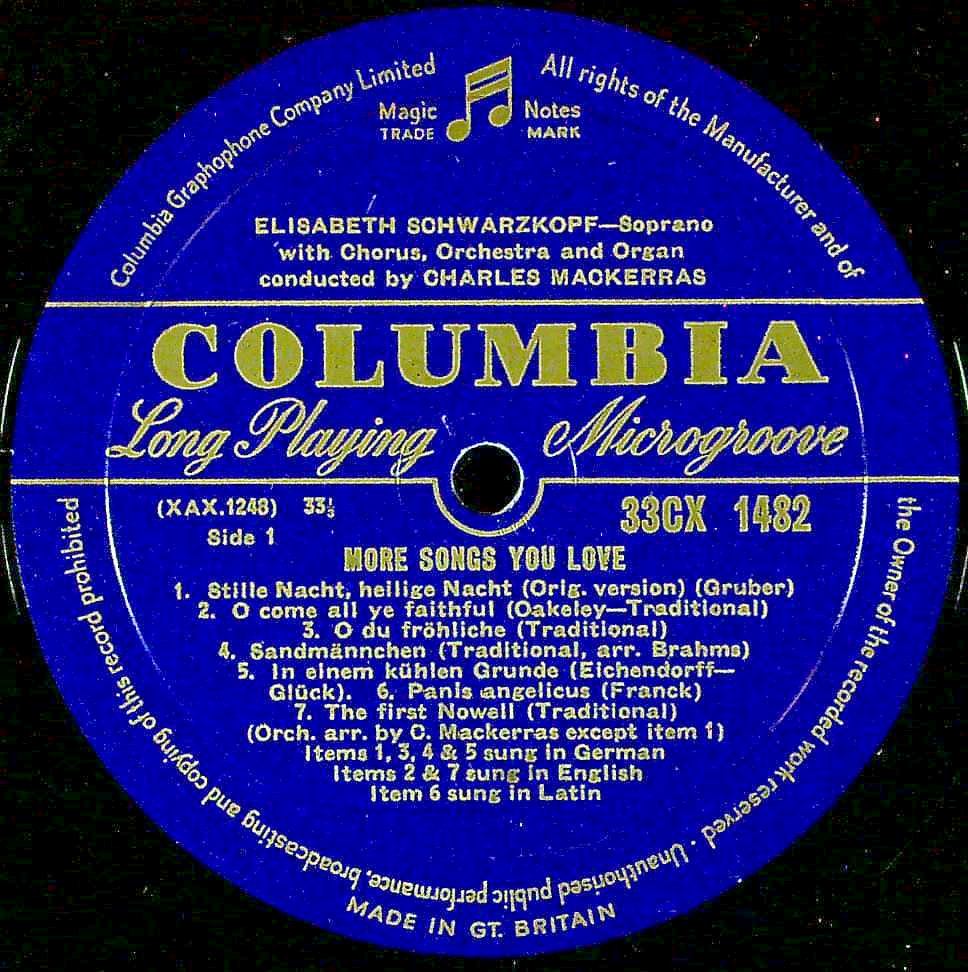 商品コード:1344-028[COLUMBIA] E.シュヴァルツコップ(s)/ クリスマス・ソング集13曲/グルーバー, グルック 他