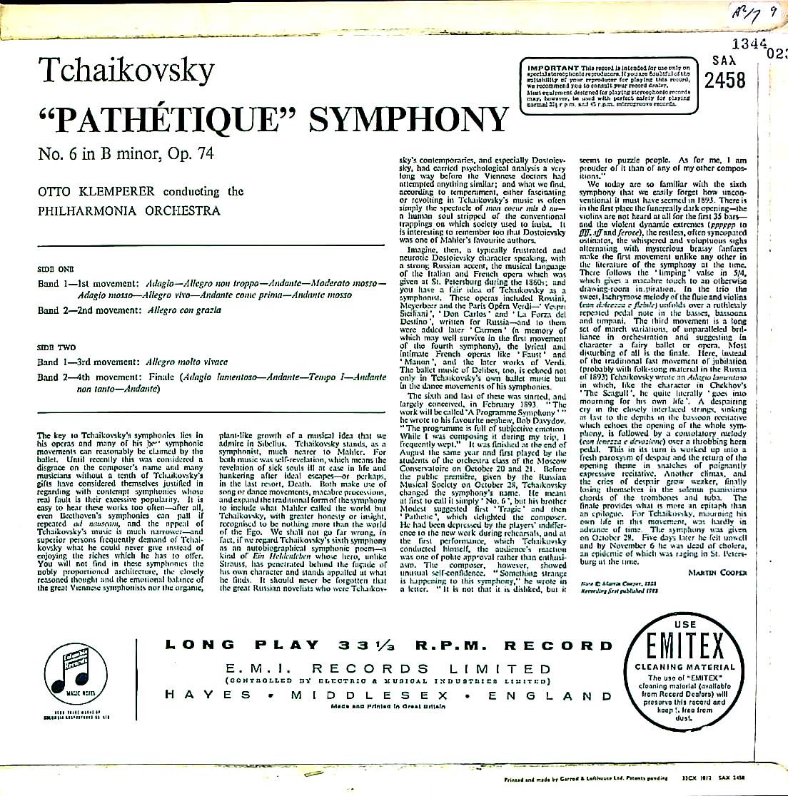 商品コード:1344-023[COLUMBIA] O.クレンペラー指揮/ チャイコフスキー:交響曲6番「悲愴」