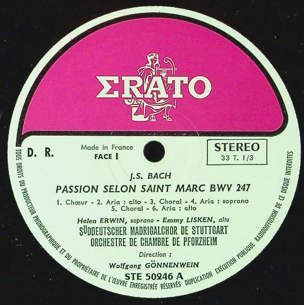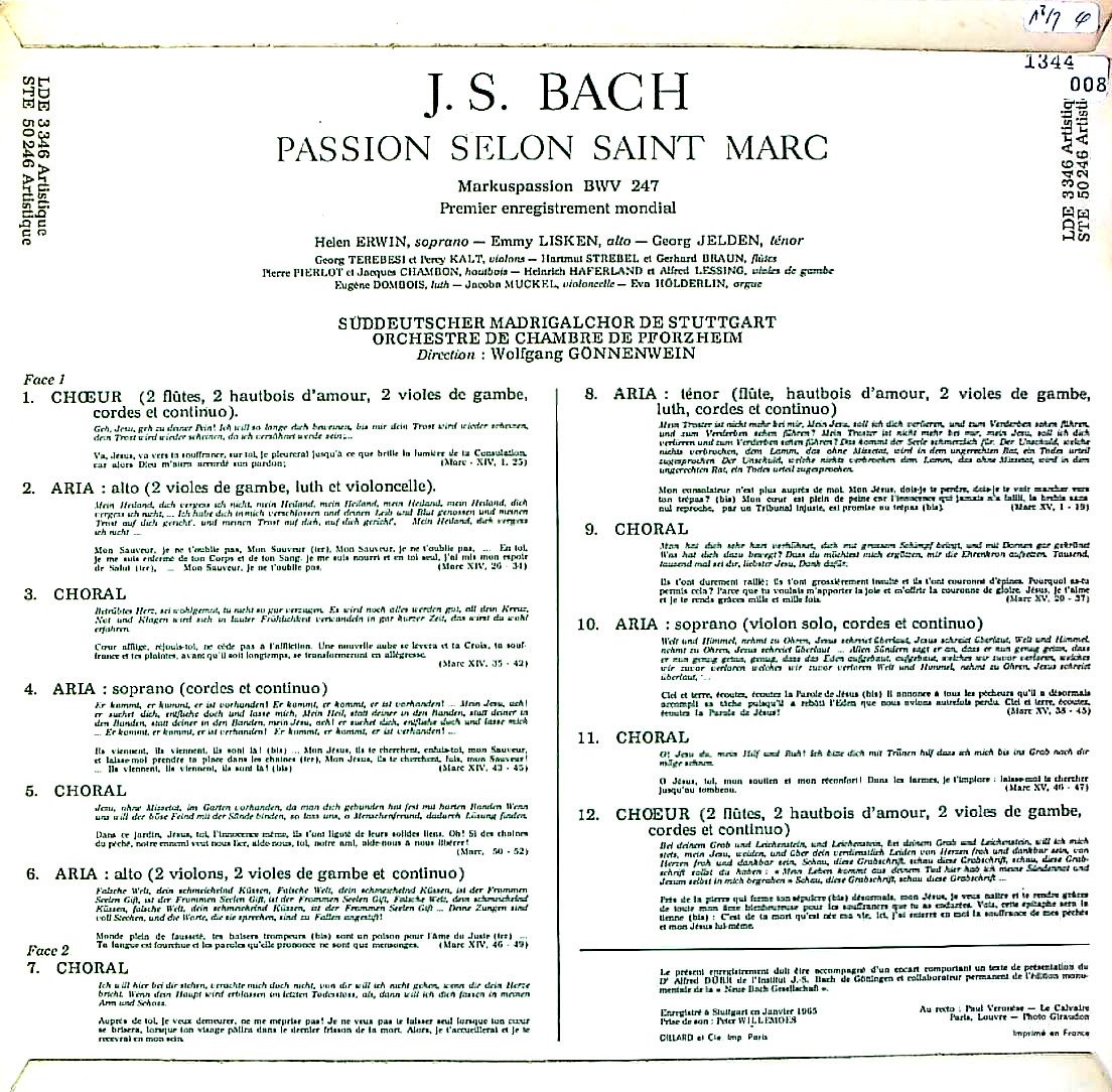 商品コード:1344-008[ERATO] W.ゲネンヴァイン指揮/ バッハ:マルコ受難曲