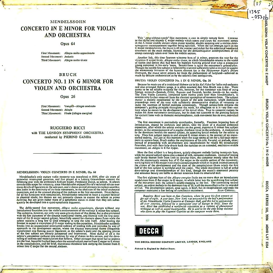 商品コード:1345-053nb[DECCA] R.リッチ(vn)/ Vn協奏曲/メンデルスゾーン, ブルッフ