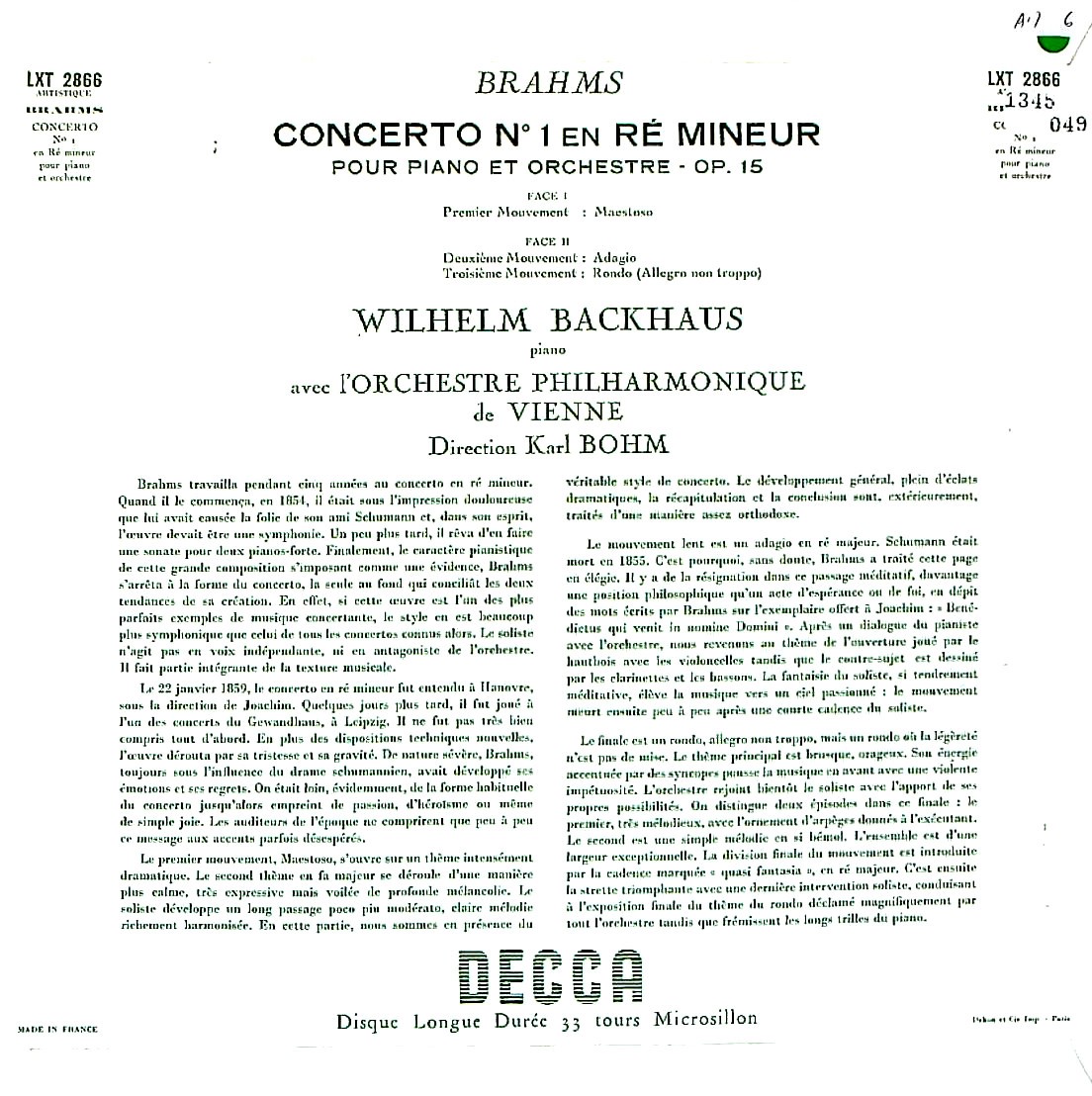 商品コード:1345-049[DECCA] W.バックハウス(pf)/ ブラームス:Pf協奏曲1番