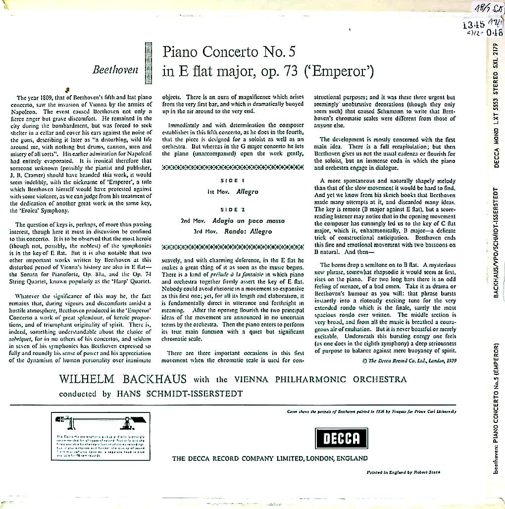 商品コード:1345-048[DECCA] W.バックハウス(pf)/ ベートーヴェン:Pf協奏曲全集・バラセット(全5曲)
