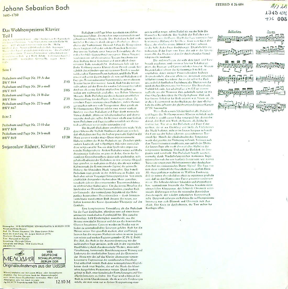 商品コード:1345-008n[ETERNA] S.リヒテル(pf) / バッハ:平均律クラヴィア曲集第1巻(全24曲)