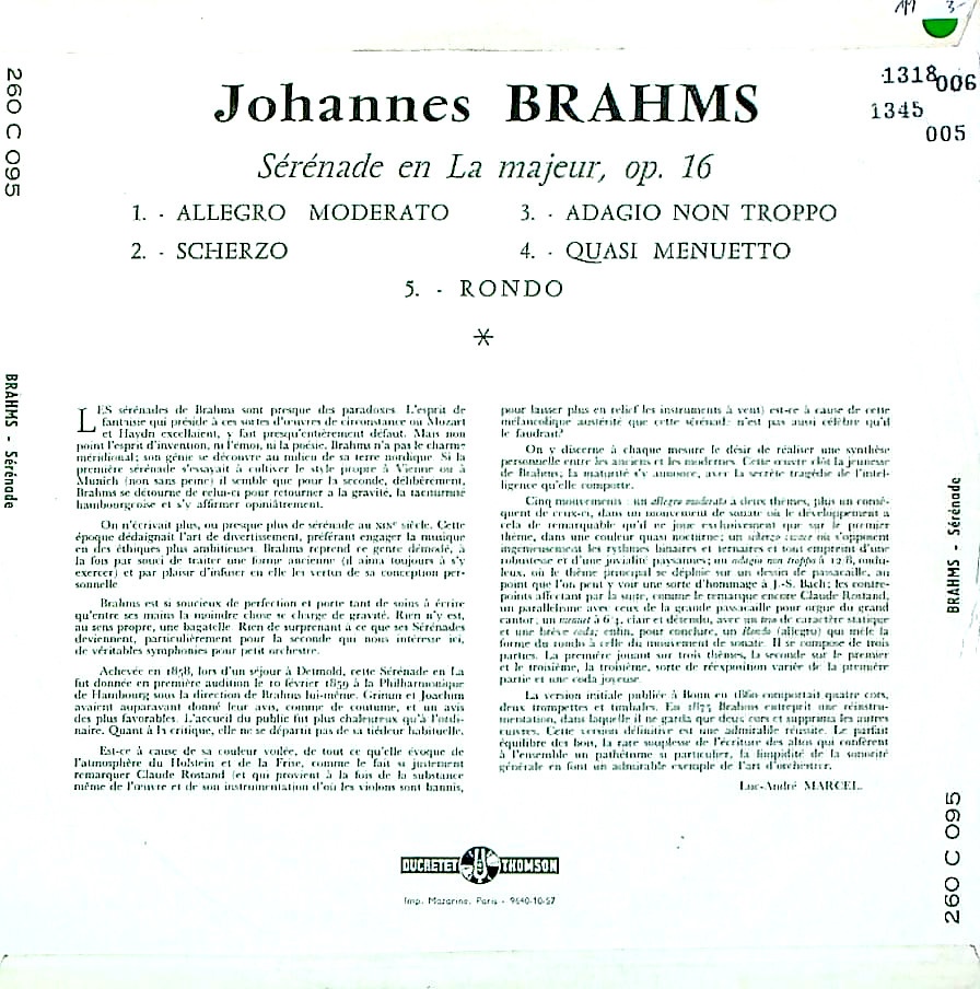 商品コード:1345-005[Ducretet Thomson] A.ジューヴ指揮/ ブラームス:セレナーデ2番