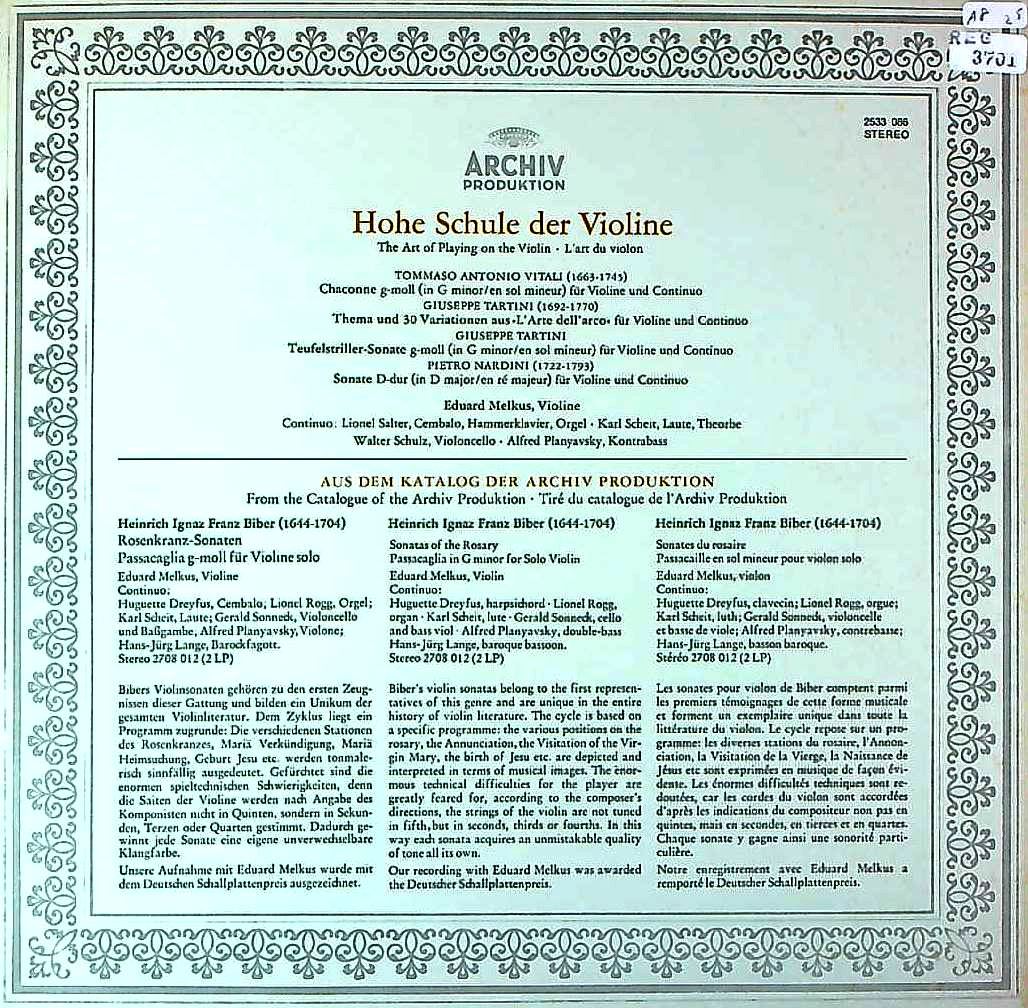 商品コード:REG-3701[独ARCHIV] E.メルクス(vn) 他/ ヴィターリ:シャコンヌ, タルティーニ:悪魔のトリル, 変奏曲, ナルディーニ:ソナタ
