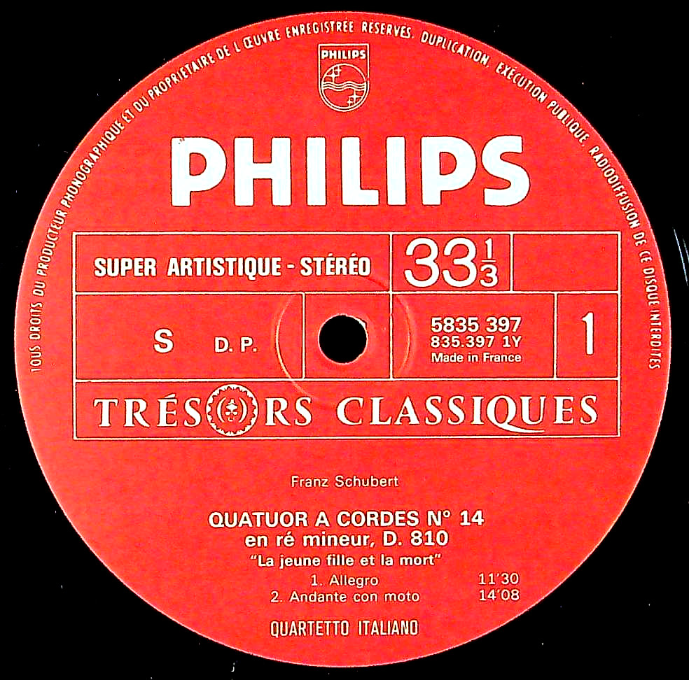 商品コード:REG-3700[欧PHILIPS] イタリアQt. / シューベルト:弦楽四重奏曲14番「死と乙女」, 12番「四重奏断章」