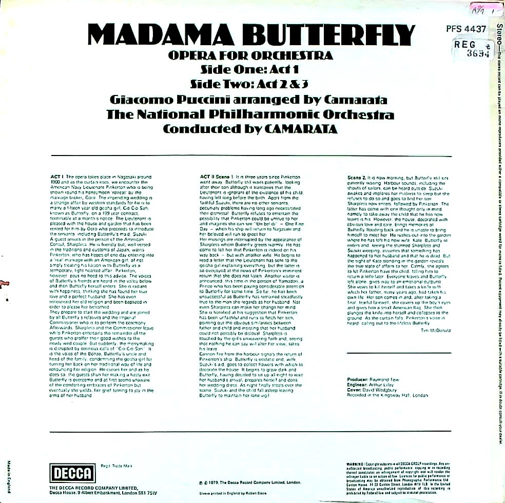 商品コード:REG-1515t[英DECCA] S.カマラータ指揮/ プッチーニ(カラマータ編):蝶々夫人(全3幕)