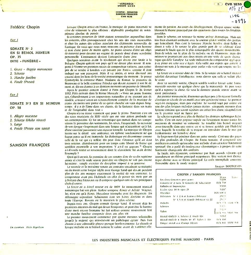 商品コード:1346-059b[VSM] S.フランソワ(pf) / ショパン:Pfソナタ2番「葬送行進曲」, 3番