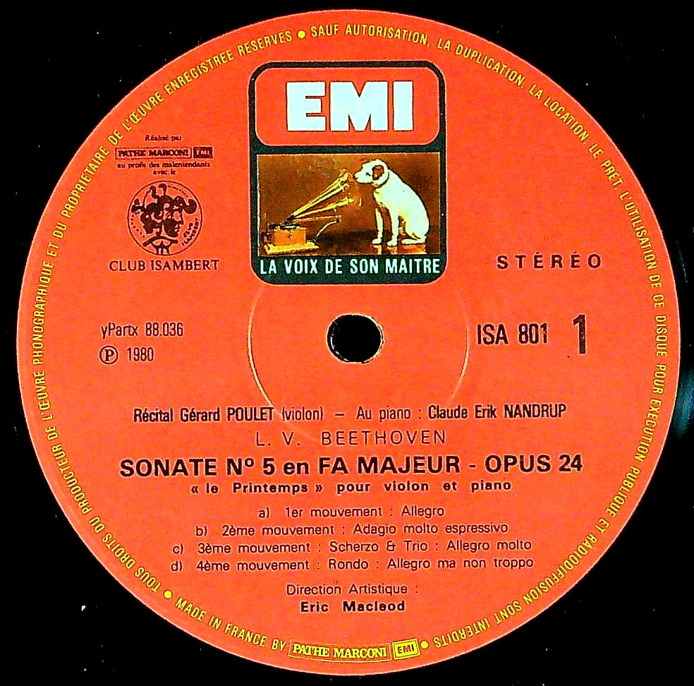 商品詳細:2枚組。1979年頃の録音。CLUB ISAMBERTというパリの病院関係のトップ達の集りのようで、おそらく医療関係の慈善用のチャリティー録音の一つだろう。Vnのプーレはそういった活動に積極的だったようで、バッハとモーツァルトの協奏曲もPhilipsで同様の活動のために録音していた。彼のベートーヴェンはやや細身だが清潔な佇まいと温かい気持ちが反映された素晴らしい演奏で、ズスケのそれと通じる所がある。極めてレア!レーベルのHors Commerceは通常の取引外を意味する。発売はLa Voix De Son MaîtreだがClub Isambertという医療関係の慈善用のチャリティー・レコードを監修する団体のマークが付くレーベルでレコード番号もISA **という特殊番号になる。レーベルはLa Voix De Son Maîtreとは限らずPHILIPSの場合もある。実際プーレのモーツァルト/バッハの協奏曲集はPHILIPS:6833 226で出ている。プーレはやはり2枚組のベートーヴェン:Vn協奏曲Op.61,三重協奏曲Op.56が入るチャリティー用LPも出している。中でもこのISA 80だけがVnソナタ集であり、人気が高い。ジェラール・プーレ(1938-)はヴァイオリニストだったガストン・プーレ(REMINGTON)の息子として、1938年バイヨンヌ生れた。11歳でパリ音楽院入学。2年で首席で卒業。18歳で伊・パガニーニ・コンクールで優勝という天才的ソリスト。1970年代フランスで最も活躍したヴァイオリン奏者の一人だろう。B.ヴェルレ(cemb)と共演したモーツァルトの初期Vnソナタ集で一躍知られるようになった。ヘンリク・シェリングの愛弟子としても知られ、国際的なキャリアを築いた。そして数多くの国際コンクールの審査員に招聘されている。2005年4月から2009年3月まで東京芸術大学の客員・招聘教授、2010年4月からは昭和音楽大学の客員教授を務めている。プーレの特徴は美音とデリカシーのかたまりのような穏やかな表情だろう。密度が高く滑らかな音色は稀な存在である。バッハやモーツァルトでその美音をいかんなく発揮するが、パンチに欠ける節があり解かる人にしか分からいない傾向が強い。1979年録音ではあるが、その時期としては最高ランクの演奏であり、何といっても美音を活かした前のめりとも言える大胆な演奏が魅力的である。表情は落ち着いていて上手いヴァイオリン奏者である。