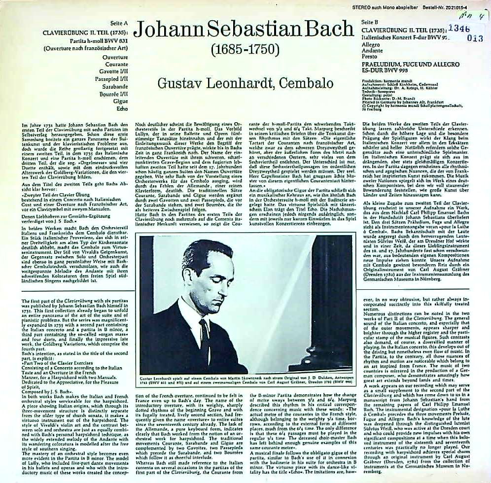 商品コード:1346-013n[BASF-HM] G.レオンハルト(cemb) / バッハ:フランス風序曲, イタリア協奏曲 他