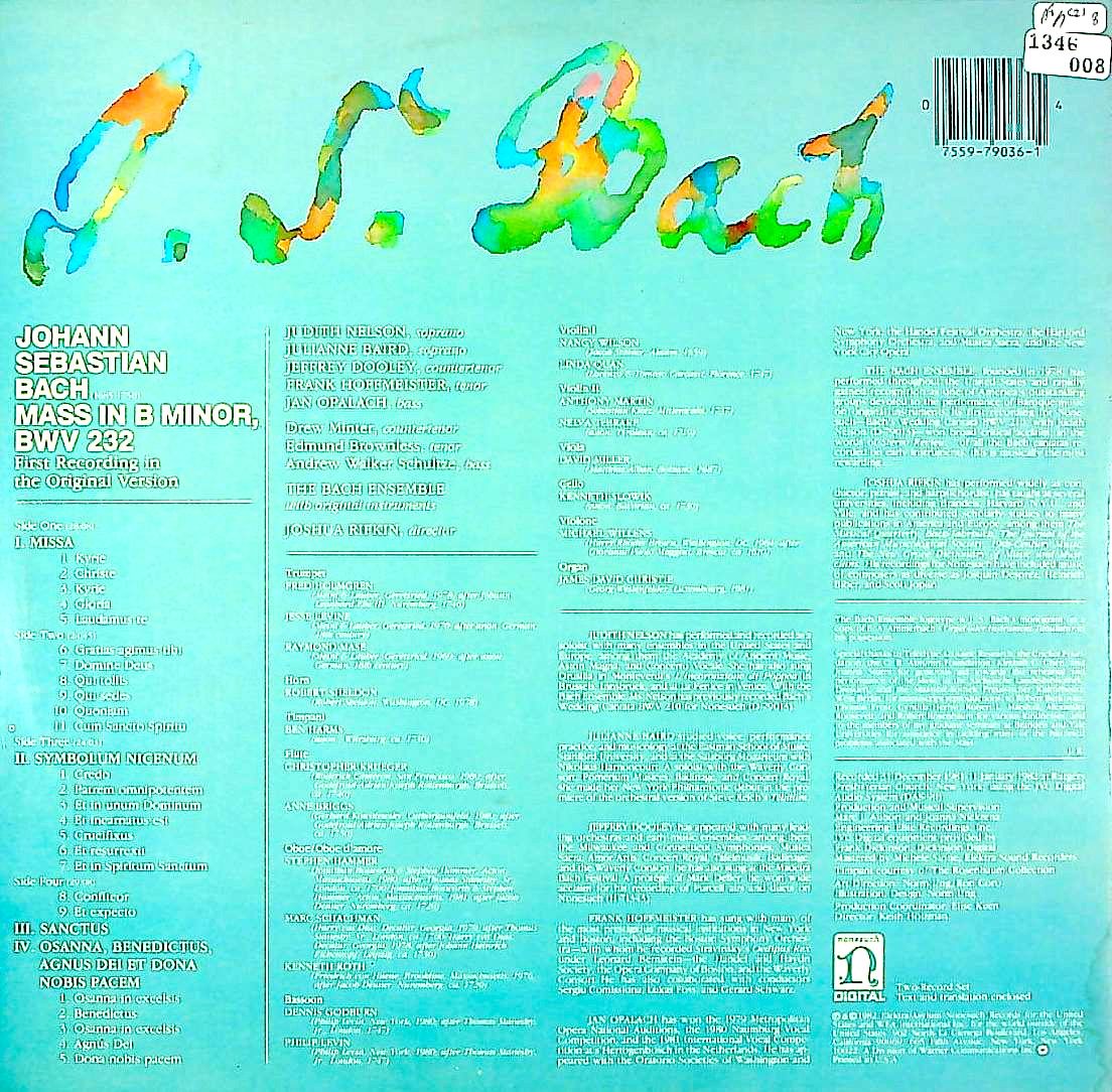 商品コード:1346-008[NONESUCH] J.リフキン指揮/ バッハ:ロ短調ミサB.232(リフキン校訂版・全曲)