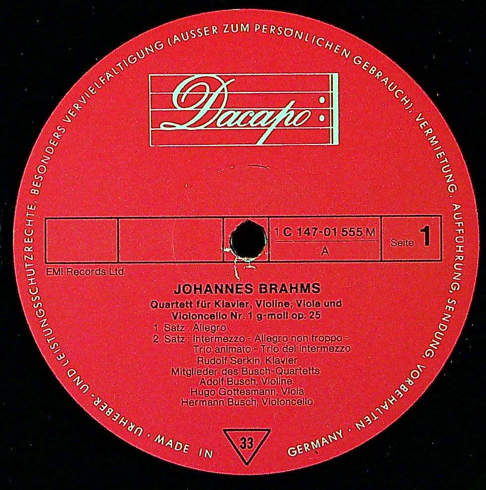 商品コード:REG-3709[独ELECTROLA] R.ゼルキン(pf) ブッシュQt. / ブラームス:Pf四重奏曲1番, 2番