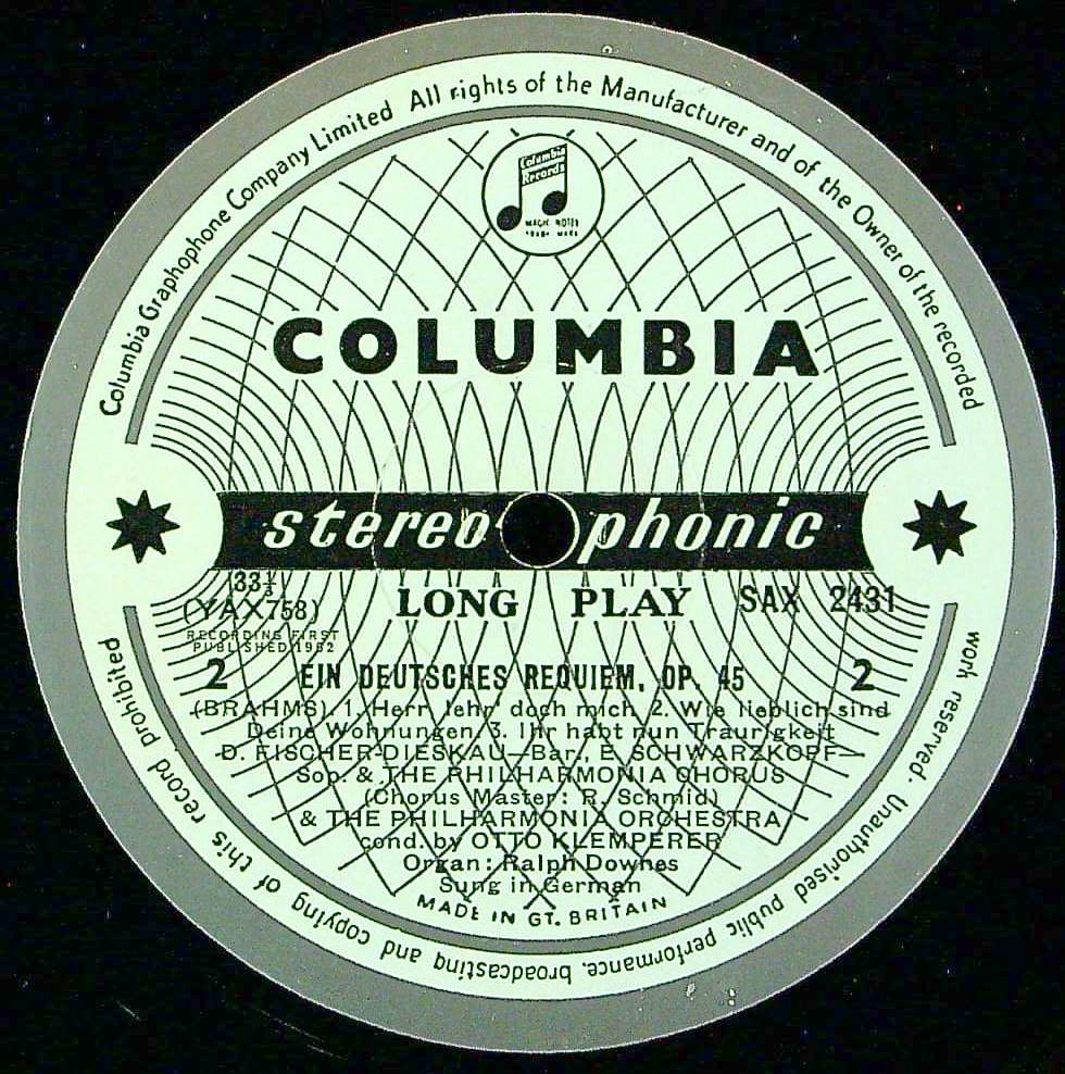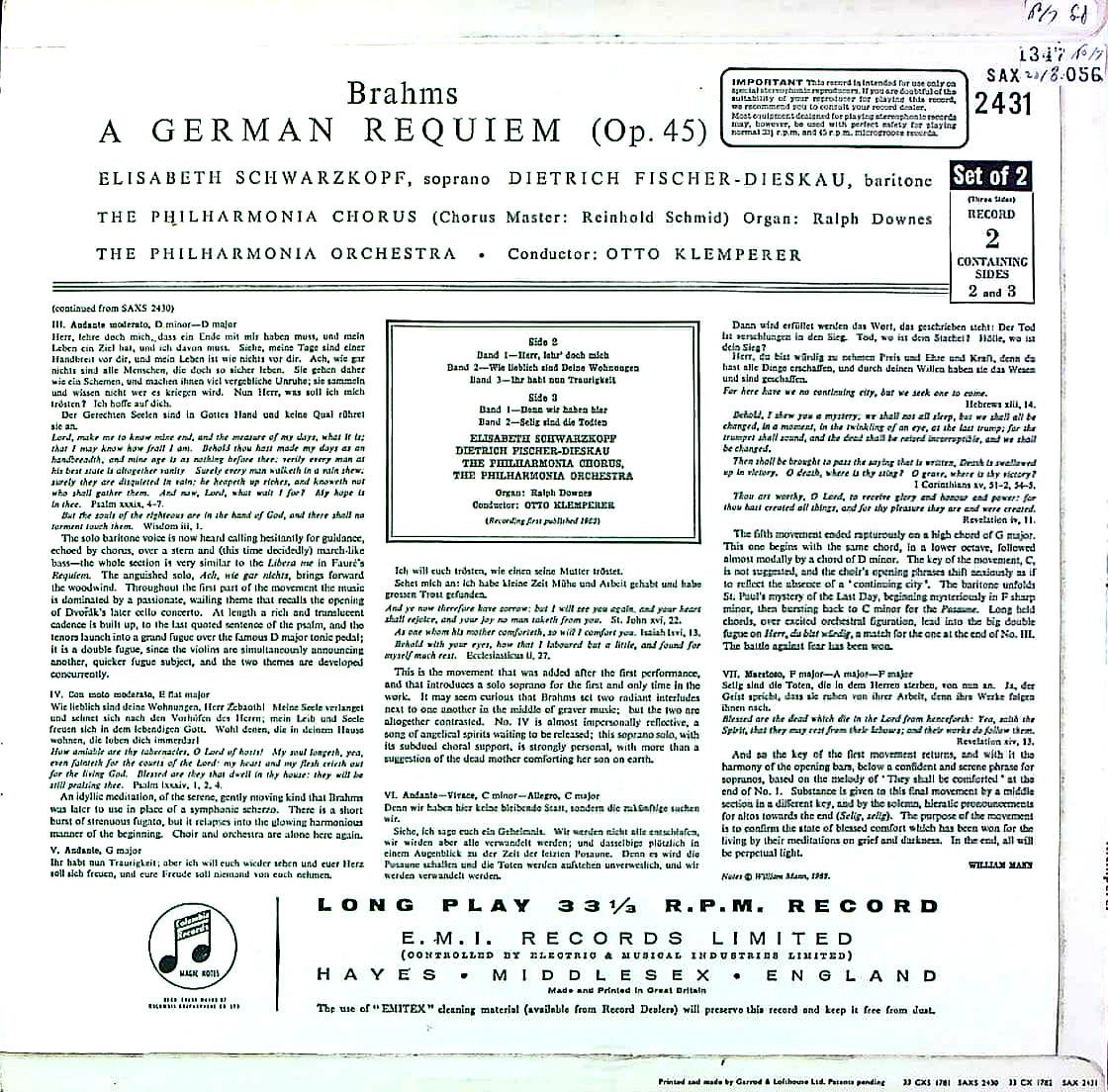 商品コード:1347-056[COLUMBIA] O.クレンペラー指揮 E.シュヴァルツコップ(s) 他/ ブラームス:ドイツ・レクイエム