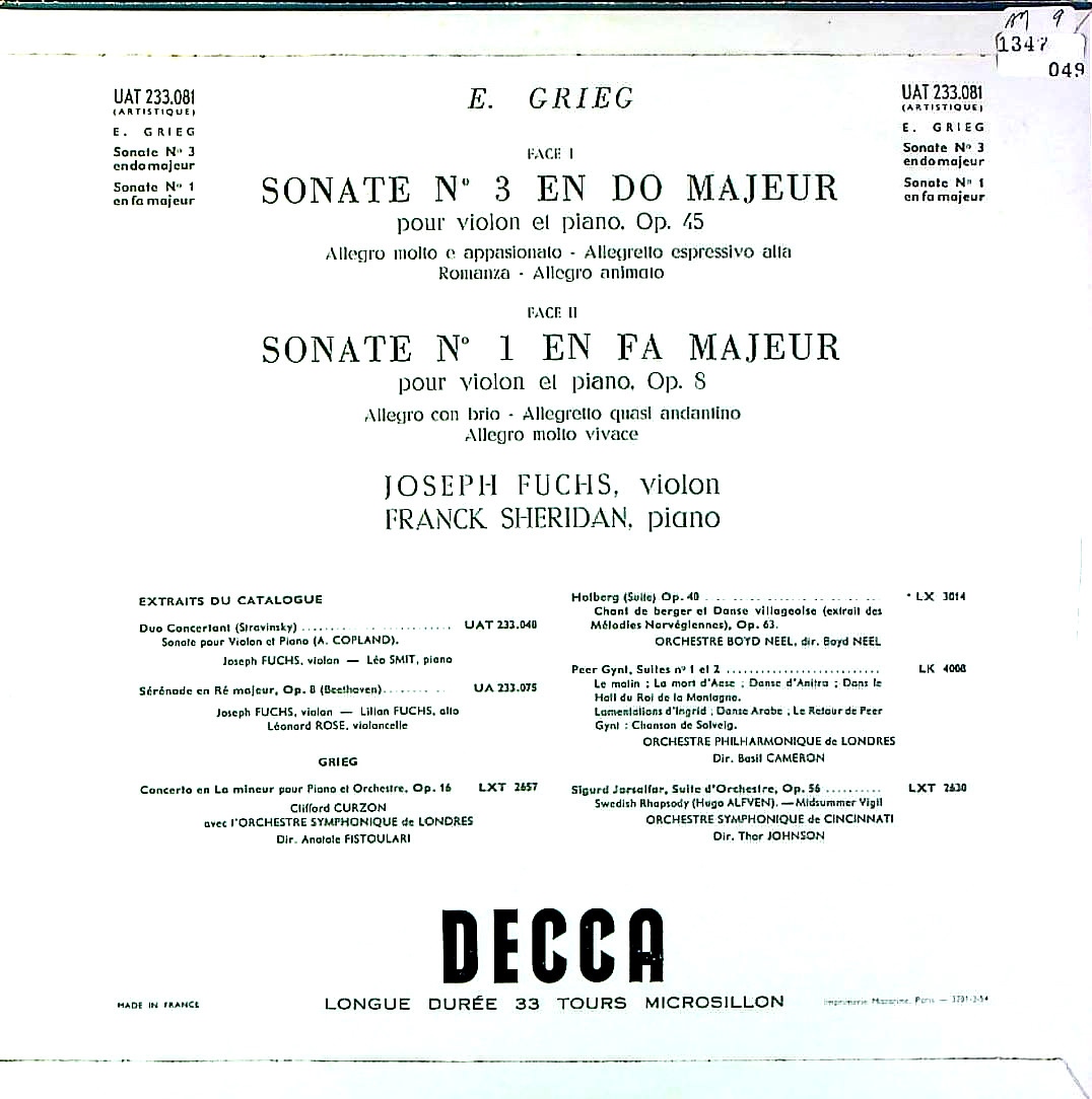 商品コード:1347-049[DECCA] J.フックス(vn)/ グリーグ:Vnソナタ3, 1番
