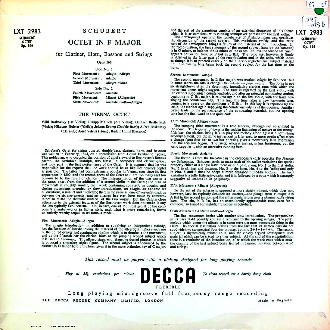 商品コード:1347-038b[DECCA] ウィーン八重奏団/ シューベルト:八重奏曲