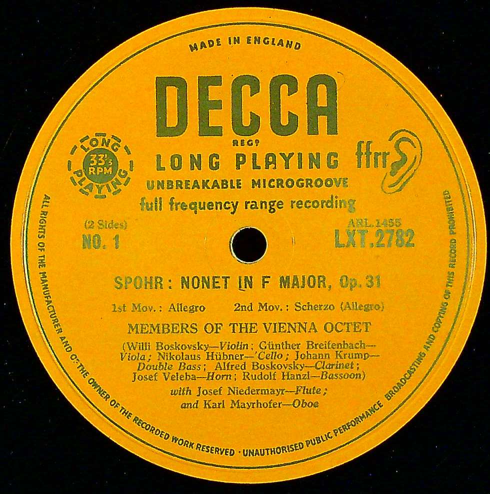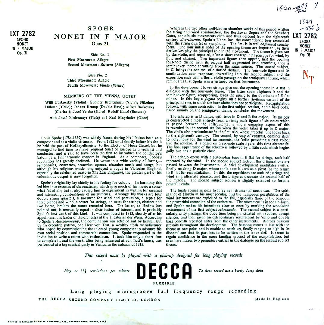 商品コード:1347-036b[DECCA] ウィーン八重奏団メンバー 他/ シュポーア:九重奏曲