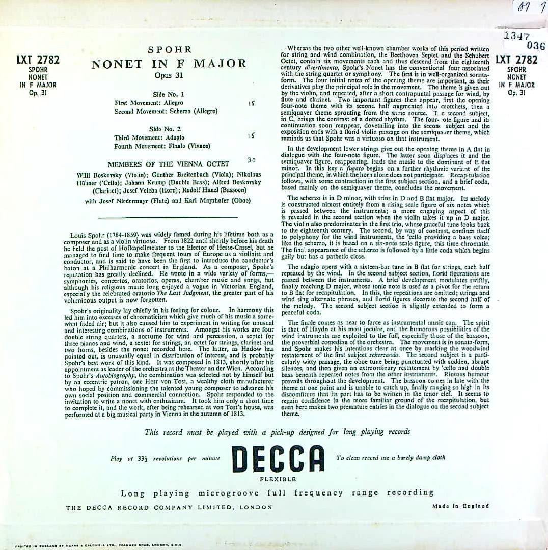 商品コード:1347-036[DECCA] ウィーン八重奏団メンバー 他/ シュポーア:九重奏曲