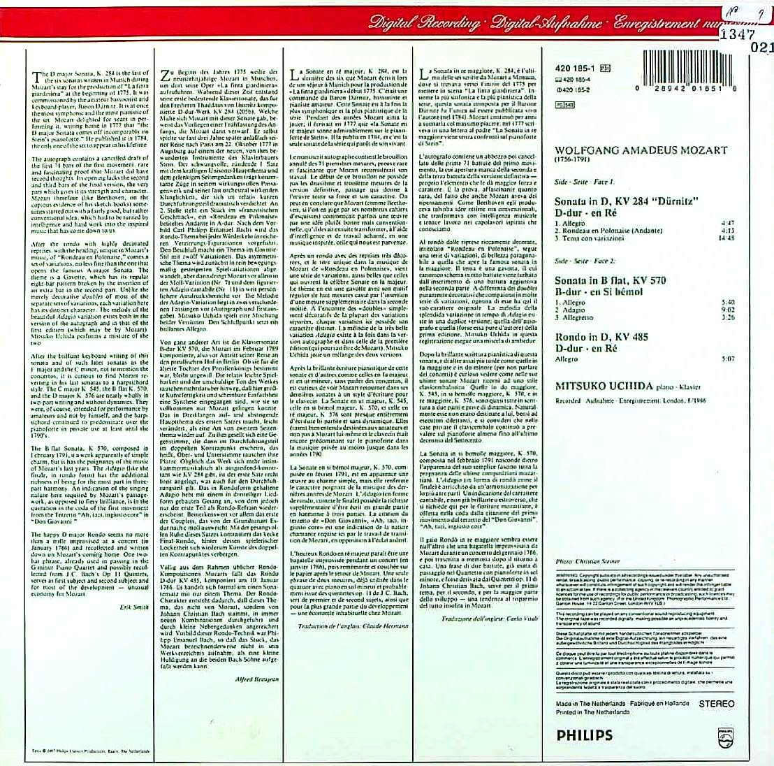 商品コード:1347-021[PHILIPS] 内田光子(pf) / モーツァルト:Pfソナタ 6番K.284, 16番K.570 他