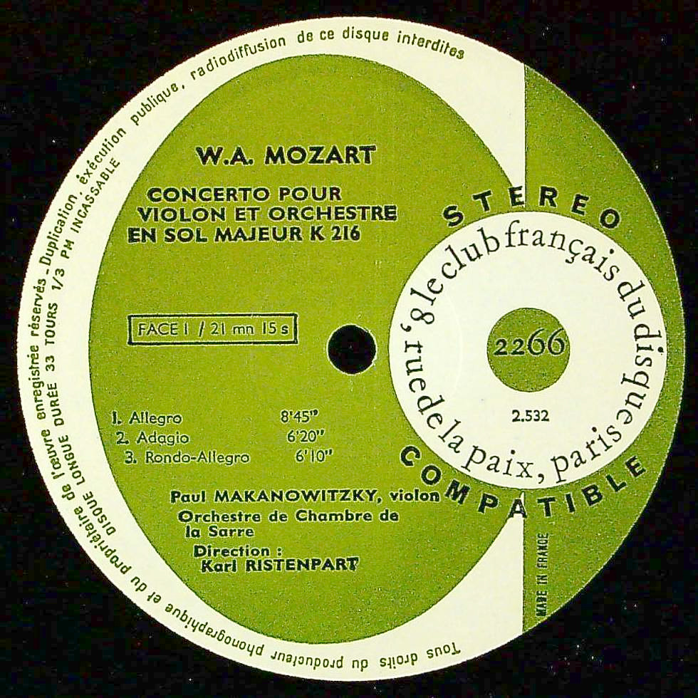 商品コード:1347-015p[Club Français] P.マカノヴィツキー(vn)/ モーツァルト:Vn協奏曲3番K.216, 4番K.218