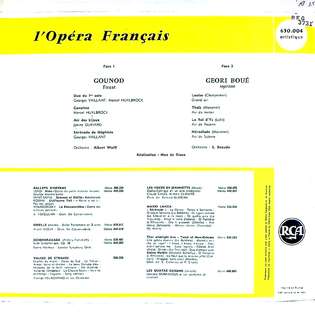 商品コード:REG-3731[仏RCA] G.ブエ(s)/ フランス・オペラ・ハイライト集/グノー「ファウスト」, シャルパンティエ:「ルイーズ」 他