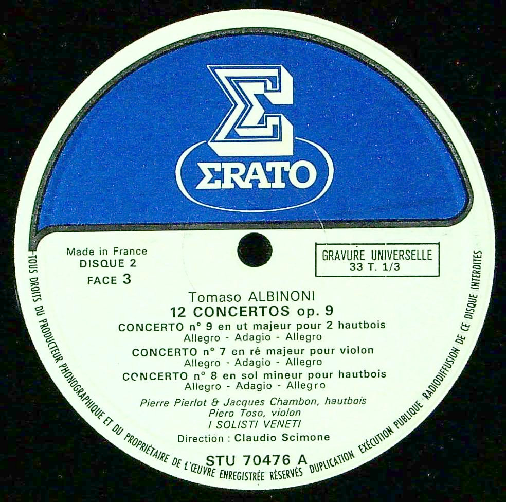 商品コード:1348-030[ERATO] C.シモーネ指揮/ アルビノーニ:5声の協奏曲集(全12曲~後半6曲・Vol.2)