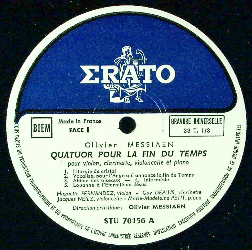 商品コード:1348-025[ERATO] H.フェルナンデス(vn) G.デュプリュ(cl) J.ネイルス(vc) M.M.プティ(pf) / メシアン:世の終りのための四重奏曲
