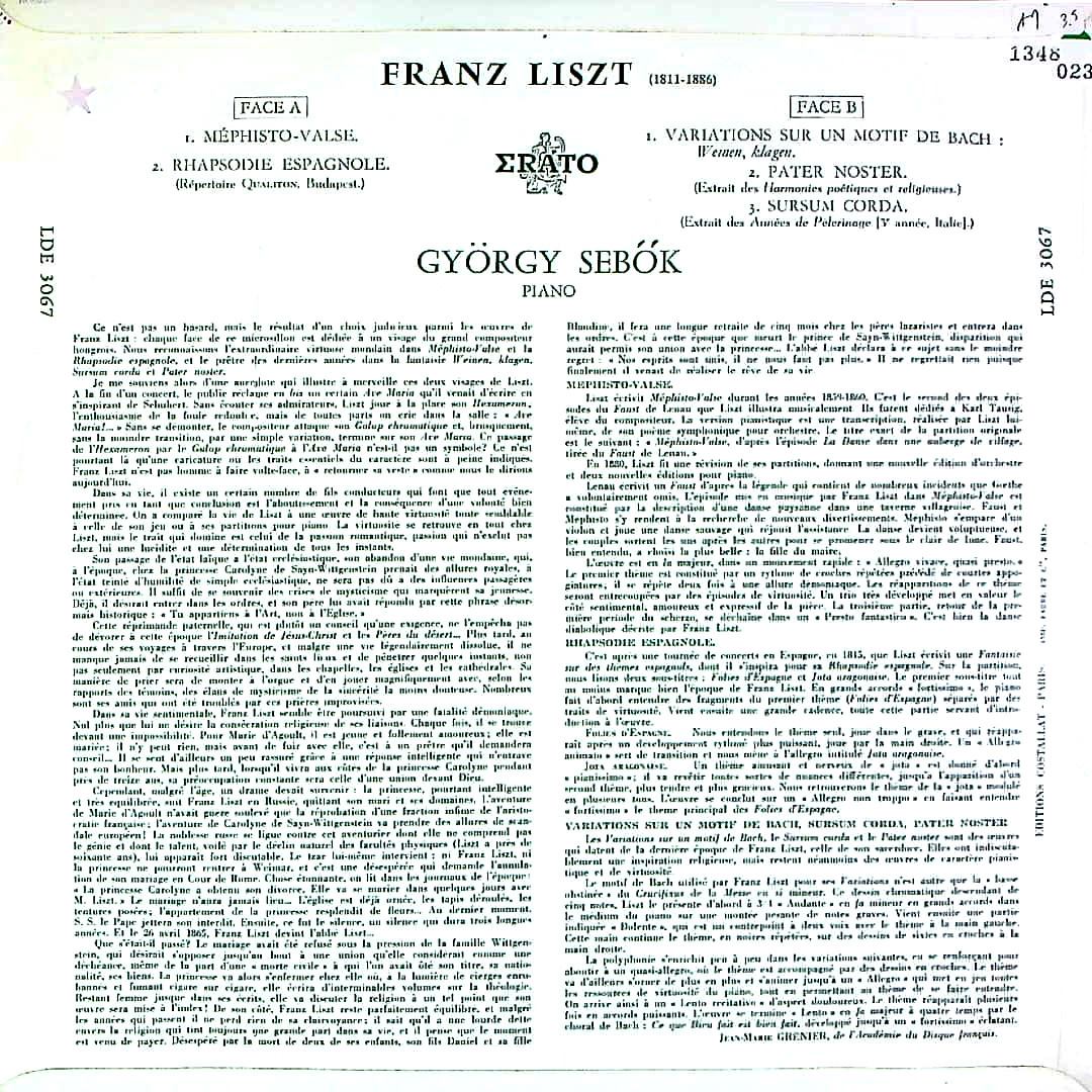 商品詳細:ハンガリー出身のシェベークというピアニストは、日本ではまだほとんど無名に近い存在だが、人気が出てきている。それもそのはず、この人のピアノには一見地味ではあるが、正攻法に弾いた味わい深さが並外れてあり、特にプロの音楽家に好まれている。リストは最近人気が低いが、フォルテを強打音のみに頼る演奏が多いからではないだろうか。うるさいだけである。彼のリストは、一味も二味も違う。音楽の深みが濃厚であり、楽しいリストなのである。ジェルジ・シェベーク(1922- 1999)はハンガリーのセゲドの生まれ。11歳でソロ・リサイタルを開き、14歳でベートーヴェンのピアノ協奏曲第1番をフリッチャイ・フェレンツと共演するなど、神童振りを発揮した。16歳のときにリスト・フェレンツ音楽大学に入学してコダーイ・ゾルターンやヴェイネル・レオーらの薫陶を受け、卒業後は欧米やロシアなどで演奏活動を始め、ヤーノシュ・シュタルケルらとも度々共演を重ねた。1949年からはブダペストのバルトーク・ベーラ音楽高等学校のピアノ科教諭に就任するも、1956年のハンガリー動乱の影響でパリに亡命を余儀なくされた。このとき、シュタルケルの援助によってブルーミントンのインディアナ大学の教授となった。また、ベルリン高等音楽院や桐朋学園大学などにも招かれてマスター・クラスを開き、後進の指導に熱心に当たった。欧州ではERATOとPHILIPSを中心に非常に多くの録音を残すも、その大半が室内楽である。ヤーノシュ、グリュミオーらが好んでシェベークの伴奏を希望するようである。それでもERATOではソロ録音が多い。そのどれもが流石と思わせる風格と感性に溢れた演奏ばかり。モーツァルトは数枚あるようだ。彼のモーツァルトは、がっちりとした構成で、ゆっくりしたテンポで山のようにそびえ立つ男性的スタイル。研ぎ澄まされた間の取り方は、名人のみが表現できるもの。一音の重みはギーゼキングに匹敵し、ギーゼキングには無い華やぎをも有す。ERATOモノラル期に多くの録音を残した。中でもショパンは得意としたが、リストはハンガリー人ピアニストが得意とする作品で、シェベークも同様である。リストの持つデモーニッシュな表情までしっかり表現できる多能なピアニスト。聴く程に良さが滲み出る演奏である。バッハの動機による変奏曲は正式には「バッハのカンタータ「泣き、嘆き、悲しみ、おののき」とロ短調ミサ曲の「十字架につけられ」の通奏低音による変奏曲 S180/R24」という長い名称で、バッハ作品をモチーフに使ったオリジナル作品のような変奏曲。カンタータ「泣き、嘆き、悲しみ、おののき BWV12」の第2曲に出てくる通奏低音をモチーフにして作られた冒頭主題は、低音の和音が厳粛で威圧的な力強さがあり、畏れを抱かせるような絶対的な何かを感じる。リストにより更に劇的に脚色されている。録音は少ないのでバッハ好きの方には面白いと思われる。