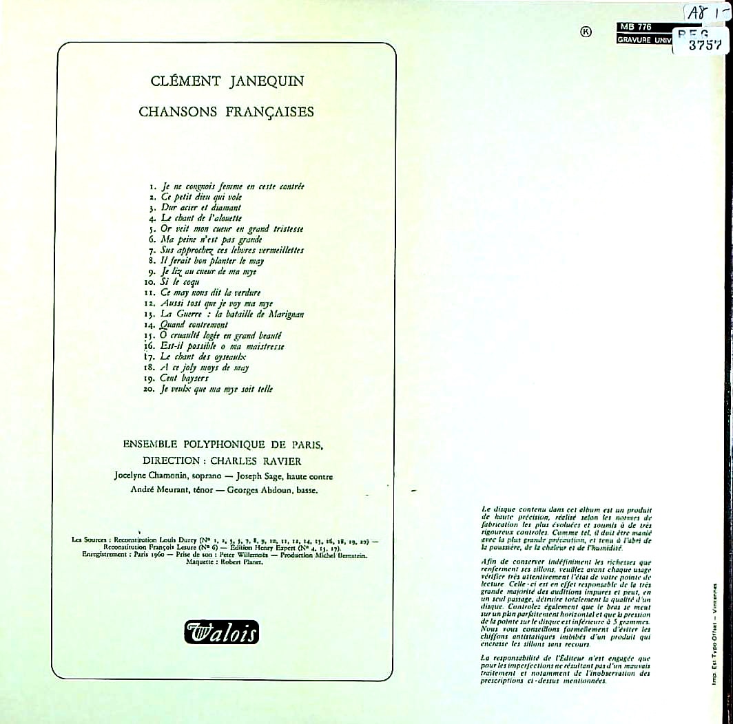 商品コード:REG-3757[仏VALOIS] C.ラヴィエ指揮/ フランス語のシャンソン集(20曲)