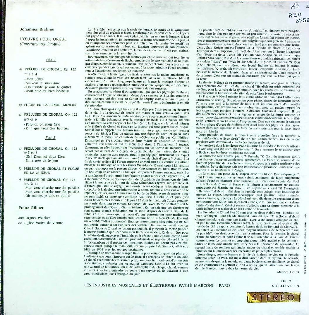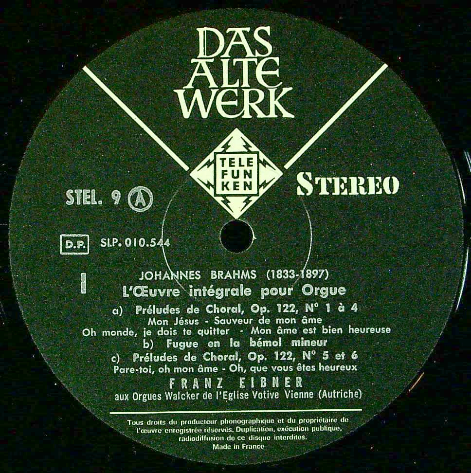 商品コード:REG-3752[仏TELEFUNKEN] F.エイブナー(org) / ブラームス:11のコラール前奏曲(全曲) 他
