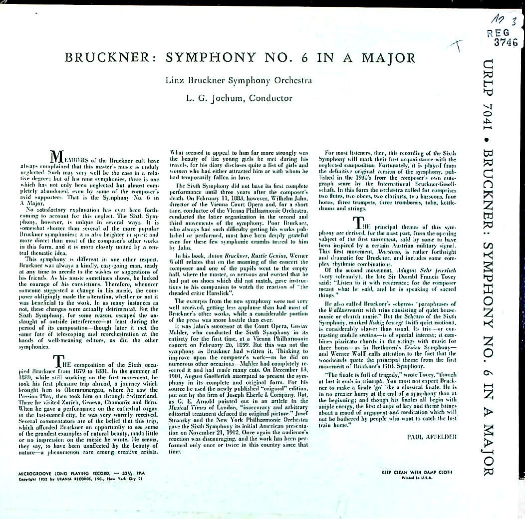 商品コード:REG-3746[米URANIA] L.G.ヨッフム指揮/ ブルックナー:交響曲6番