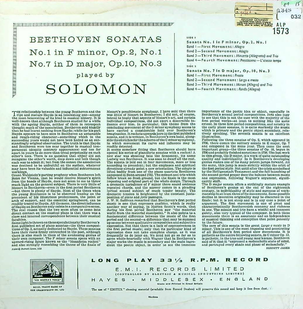 商品コード:1349-032p[HMV] ソロモン・カットナー(pf) / ベートーヴェン:Pfソナタ1, 7番